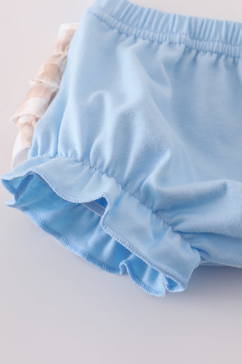 Beige puppy embroidery gingham bloomer set