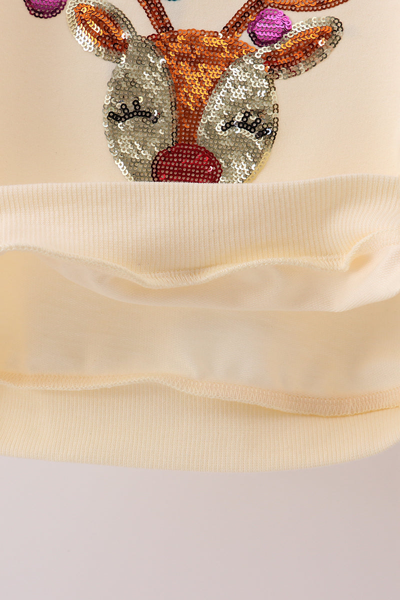 Beige reindeer sequin mom&me sweatshirt