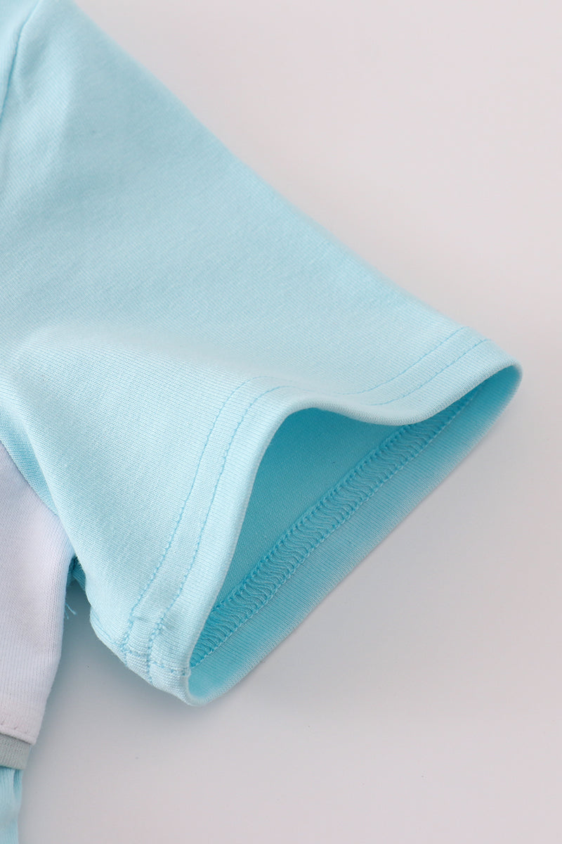 Blue flamingo embroidery short set