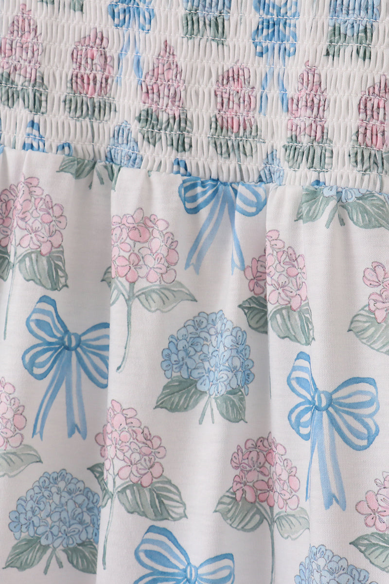 Blue hydrangea bow smocked mom&me dress