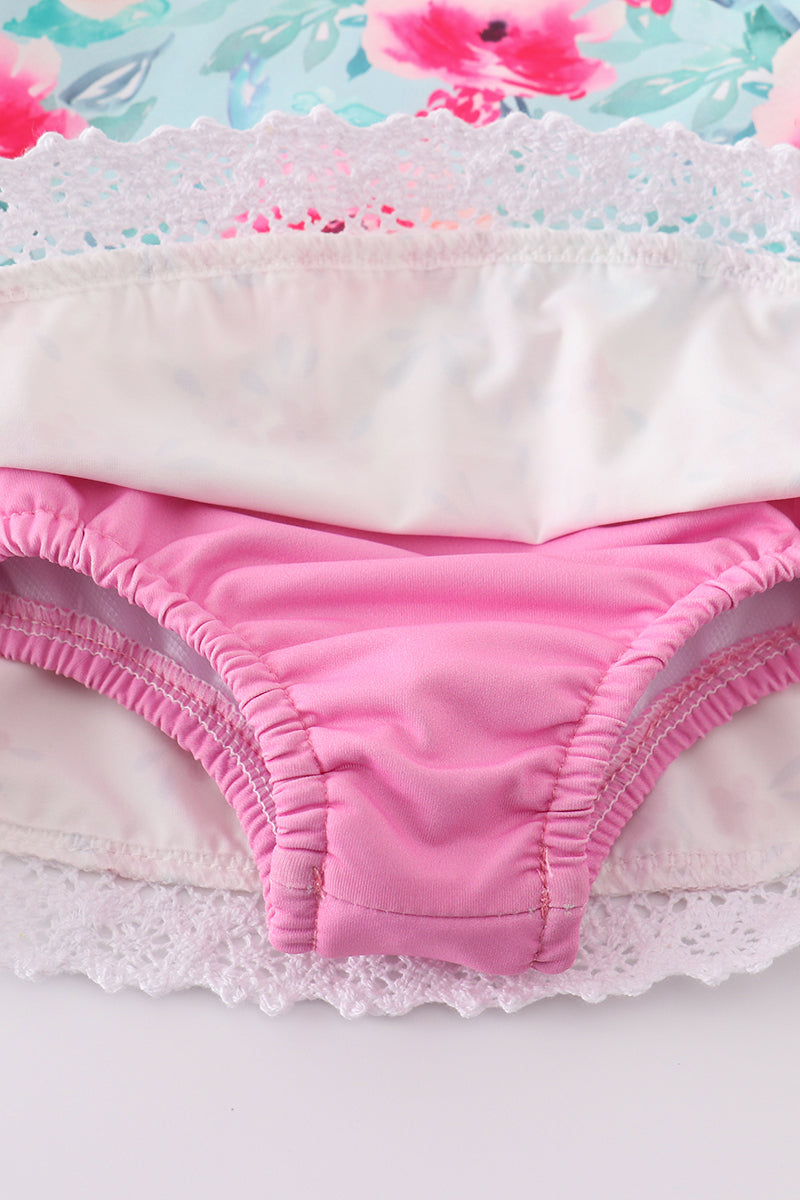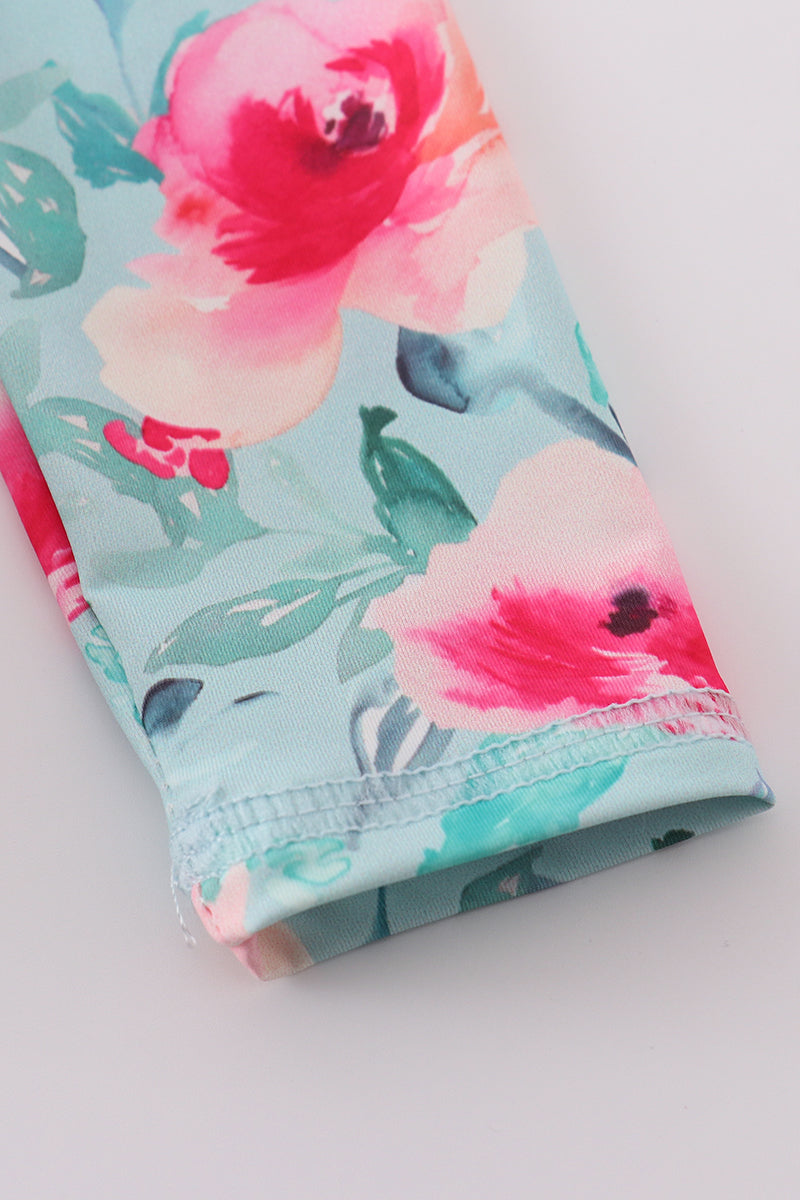 Blushing rose garden print girl one-piece leotard