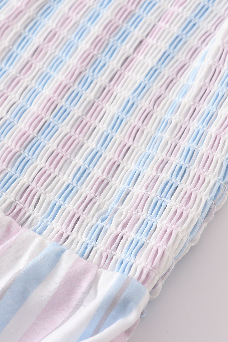 Get ready to shell-ebrate in style with our Crab french knot stripe smocked dress. With its charming crab embroidery and playful smocked design, this dress is a must-have for any beach lover. So don't be shellfish, add a little fun to your wardrobe with this dress!