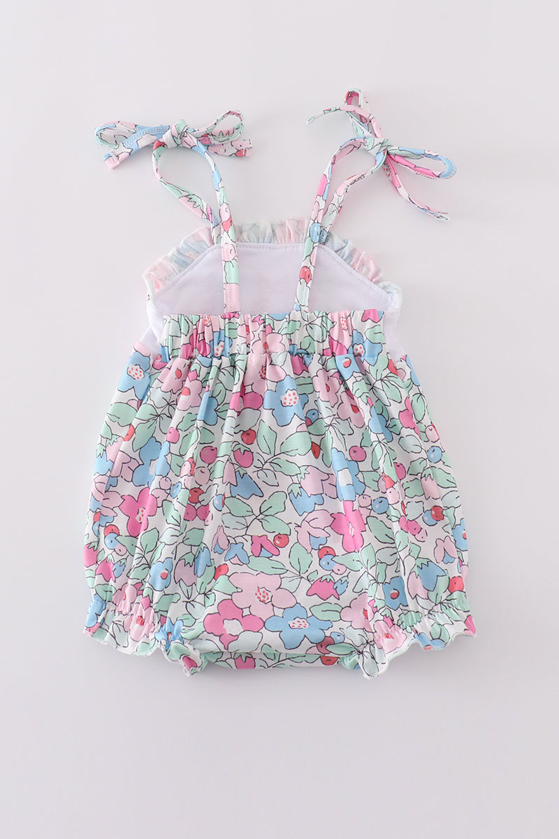 Hop into style with our Floral Bunny Embroidery Bubble! This adorable bubble features a playful floral bunny embroidery, sure to bring smiles all around. Perfect for any fun-loving fashionista looking for a unique and charming outfit. (Carrots not included.)