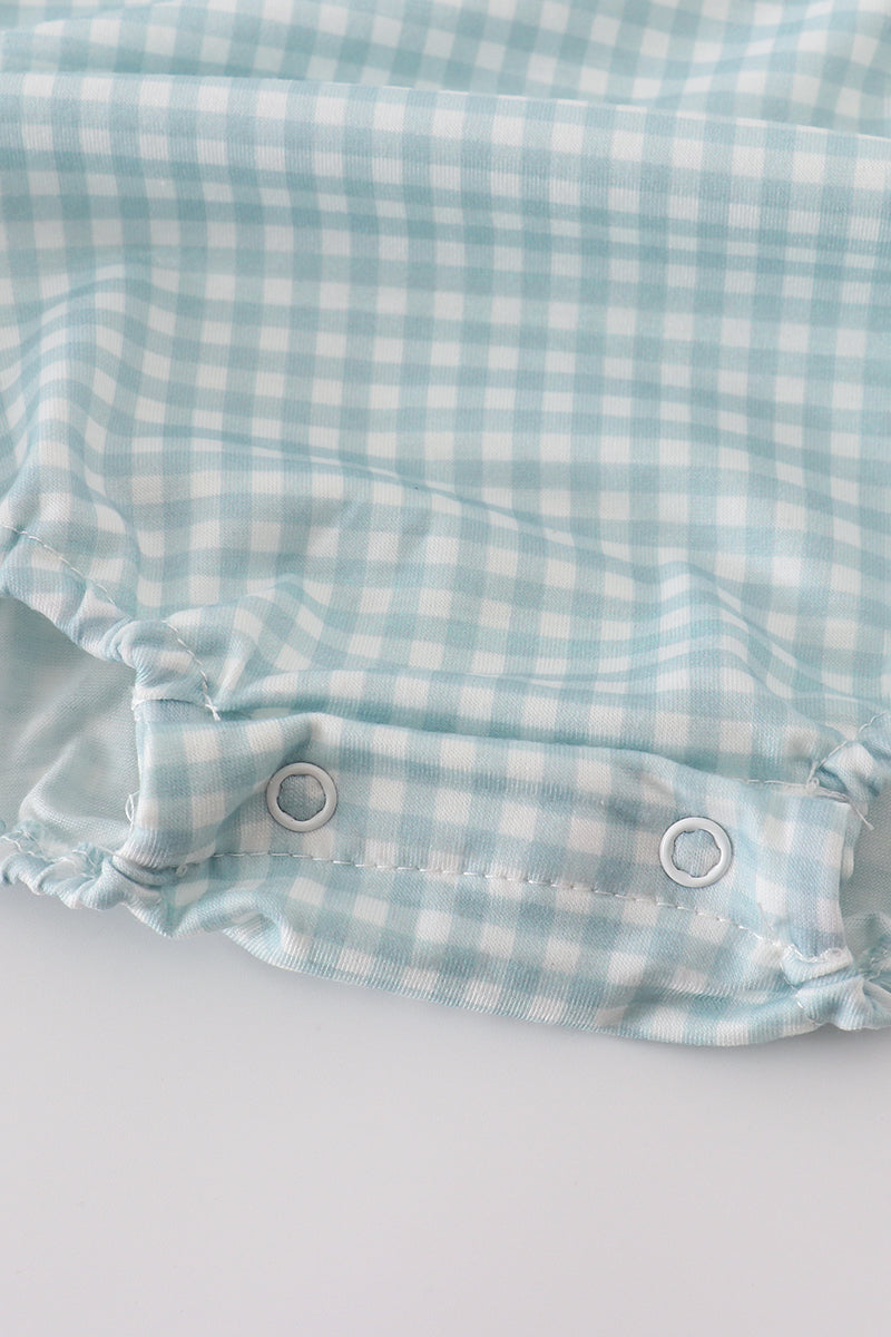 Green farm windmill embroidery gingham bubble