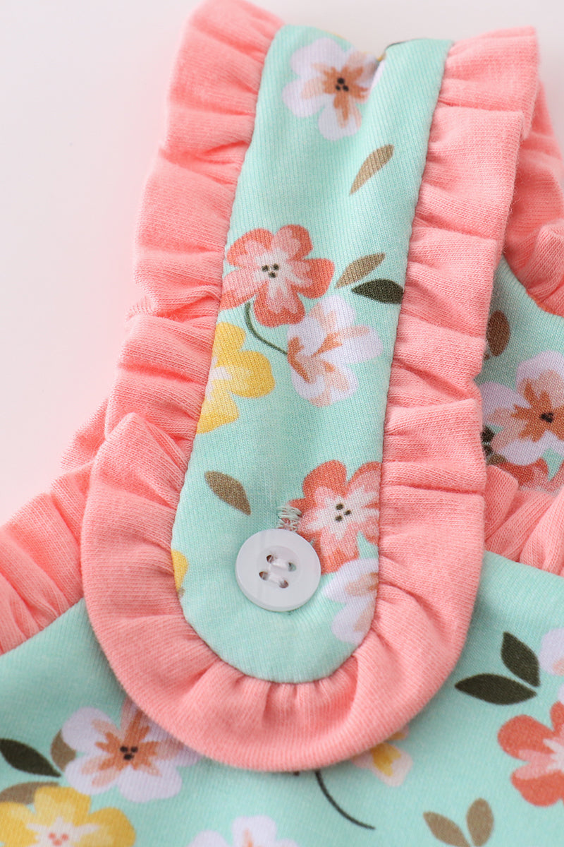 Premium green floral cross embroidery dress