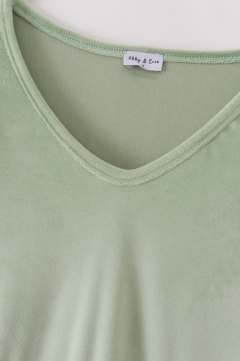 Sage floral print velvet ruffle mom dress